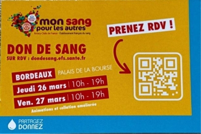 L'action inter-clubs MSPLA (collecte don du sang avec EFS) aura lieu les jeudi 26 et vendredi 27 mars 2026 au Palais de la Bourse.